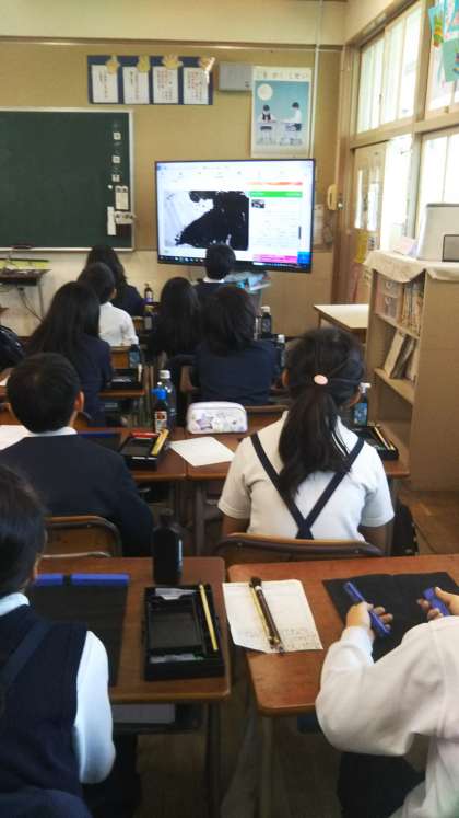 書き方の学習で、今年の漢字一字を書きました。「楽」「幸」「珠」「生」など、それぞれの思いを込めた文字を書きました。