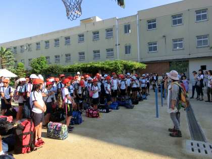 26日(土)7時15分に集合し、校庭で出発式を行いました。