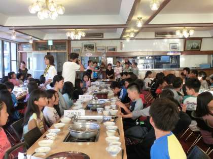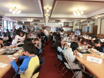 すき焼きを作りました。準備ができたら、食堂に全員入り、残さず食べていました。