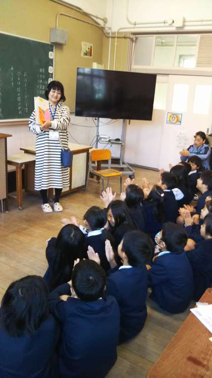 としょっぴぃさん方による読み聞かせが始まりました。今日は、とても寒い日ですが、あたたかい、ふわふわのお話でした。