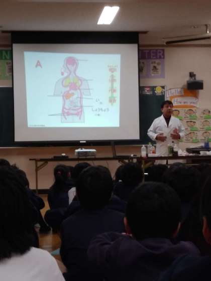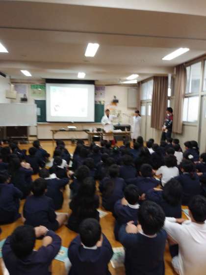 学校薬剤師の吉田先生をお招きして、5年生児童対象で行いました。『くすりの正しい使い方』『「たばこ」はほんとに害があるの?』というテーマでお話を聞かせていただきました。