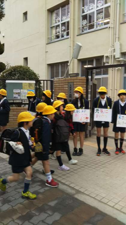 今週は、あいさつ週間です。児童会の子どもたちが、朝正門前であいさつを呼びかけました。終わりには、ミーティングをしています。