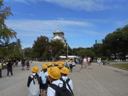 大阪城周辺は外国人観光客や修学旅行生、遠足できている小学生など大勢の人がいました。
