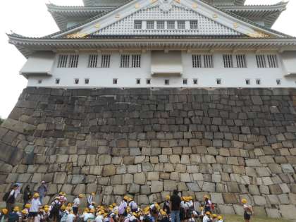 大阪城の裏側も見ました。石垣の大きさ高さにおどろきです。大きな機械を使わずに積み上げたことにびっくりしていました。