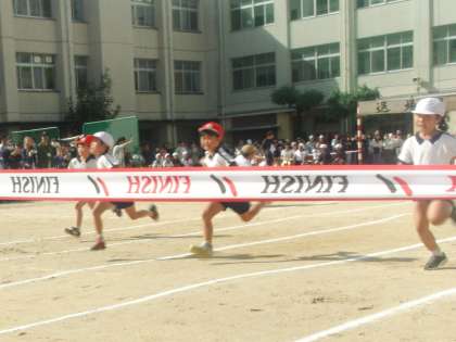 1ねんせいが ゴールに むかって