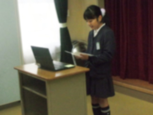 始業式では、4年生代表のおともだちによる発表もありました。