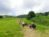 山頂から見る景色は素晴らしい。最高でした。下山して宿舎前でスイカを食べました。