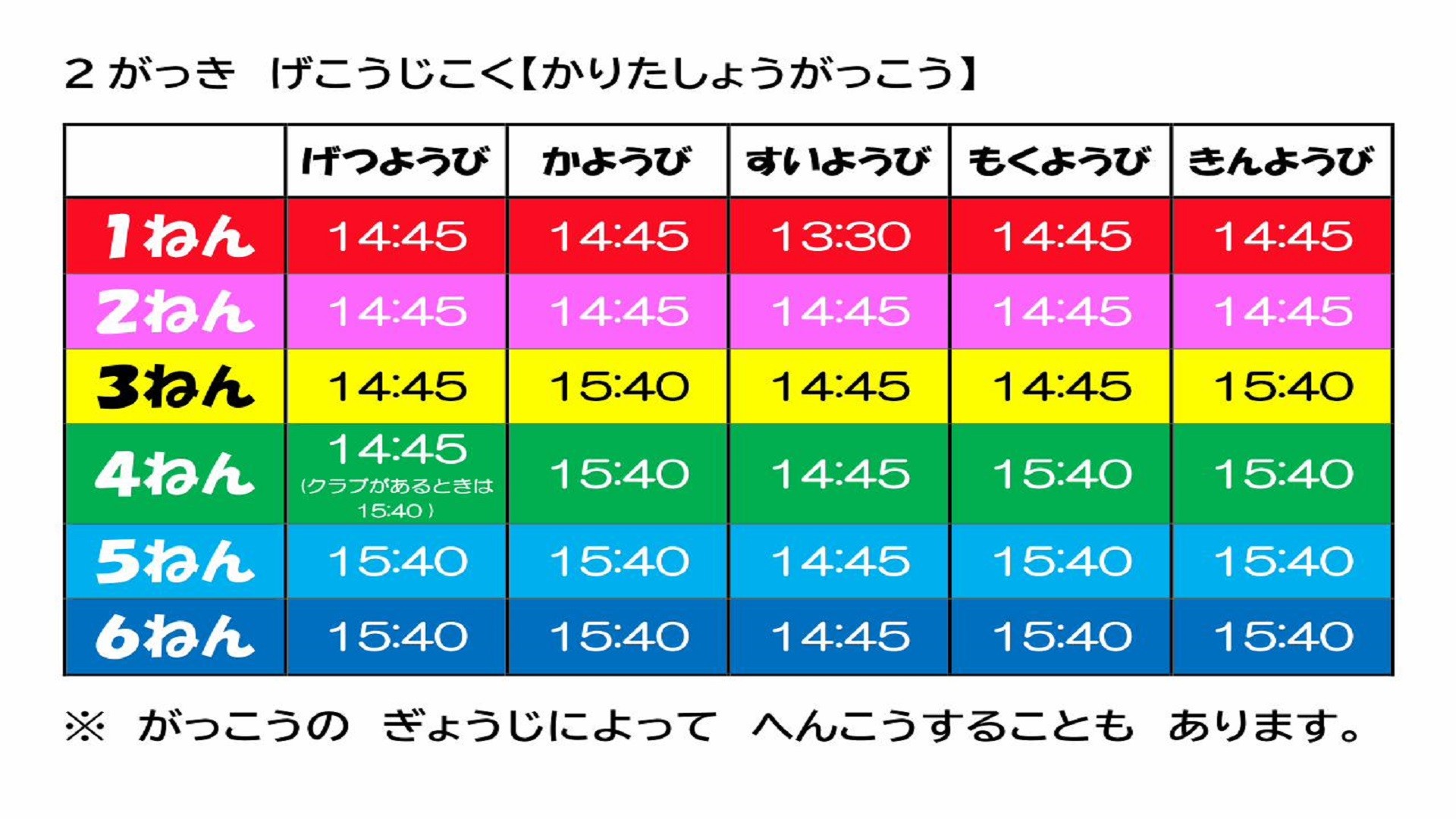 • 期末個人懇談・作品展(全学年13:30下校)