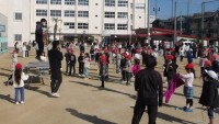 「チャレンジ週間(なわとび)」の4日目です。先生が「後ろ回しとび」の手本をしました。みんな笑顔で、いろいろな跳び方にチャレンジしています。いいぞ、「チャレンジ週間」!