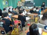 1組は、家庭科の「調理実習をしよう」の学習で、「みそ汁」を作る準備や進め方についての学習をしていました。2組は、国語の「弱いロボットだからできること」のまとめの学習をしていました。