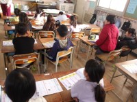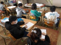 2組は、学級活動で、「自分のよいところ」「しょうらいの夢」「目標」などを、3学期の目標カードに書く活動をしていました。