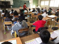 1組は、国語の新出漢字の学習で、書き順や漢字の使い方の確認をしていました。