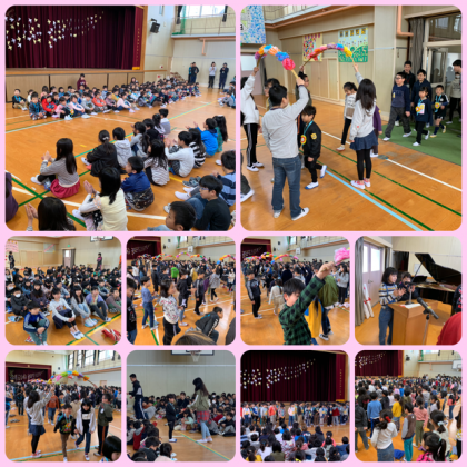 今年から、みんなで歌う校歌を1年生に聞いてもらいました。