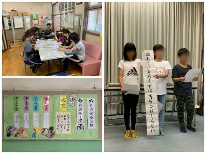 山之内強化のみなさんが、大きなケガや事故なく安全に気をつけて学校生活を送ることができるように、4〜6年生のみなさんに安全目標を考えてもらいました。