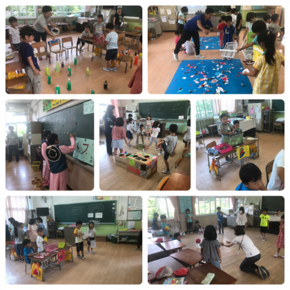 1年生から6年生まで、自分たちで考えて作ったゲームに来てくださいと、教室をお店にしてお客さんを呼び込んでいました。