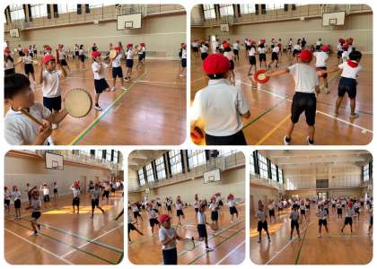 5年生はパーランクをもってエイサーにチャレンジします。