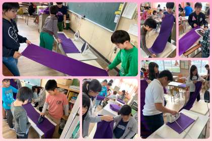 運動会が終わり、南恩加島小学校にお借りし、エイサーをつくりあげてくれた大切なアイテム『サージ』を洗濯して、アイロンをかけました。
