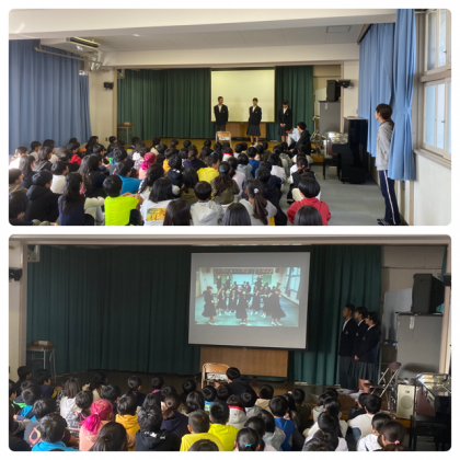 大和川中学校の生徒会の人たちが来て、11月29日にある部活動体験に向けてのお話とクラブ紹介のDVDを見せてくれました。