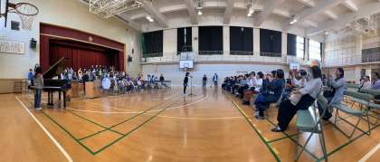 ・最初すごく緊張していました。けど歌ったりしてたら楽しくて緊張しなくなりました。私は実行委員だから本番の時に前に出て言うから、少し緊張しました。けど、友達も頑張っていたから私もがんばります。