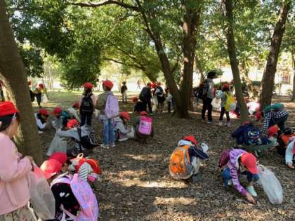 その後、植物園で色づいた葉っぱやどんぐりをたくさん拾いました。