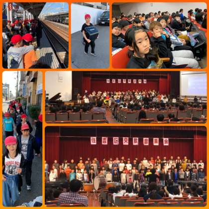 大トリです。他の学校の発表を聞いているときにも、がんばってきたみんなが、少しずつ緊張していくのを感じました。