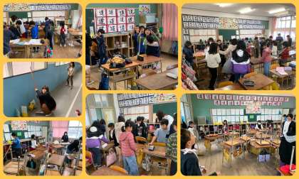 それぞれのペア学年と掃除をします。いつもと違うところを、いつもと違うメンバーで掃除する。そこには、ワクワクと責任感がありました。