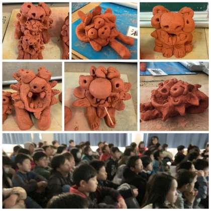 まずはシーサーの歴史を学び、作り方を見て、実際にチャレンジ!作り方見学会では目をキラキラさせて見ていました。