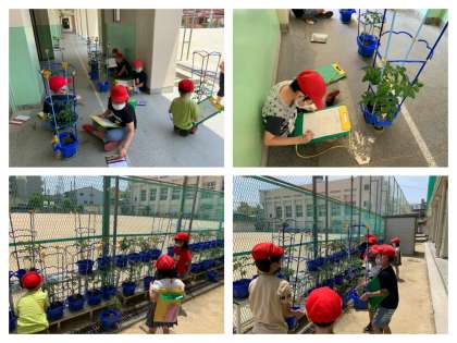 葉っぱの数を数えたり、花の様子を観察して、観察カードに記録しました。