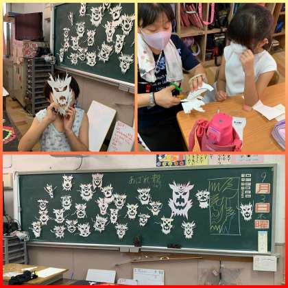 それぞれがハサミを使い、自分だけの龍を作っていました。