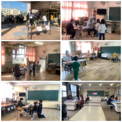 おうちの人と一緒に山之内小学校に来校し、学校医の先生方に、からだの様子をみてもらったり、視力検査や聴力検査をしました。