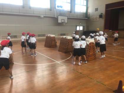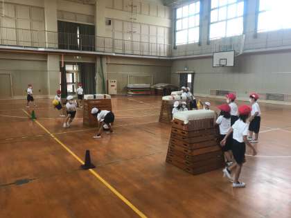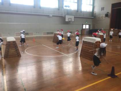 2年生は、来週のソフトボール投げの記録会に向け、各学級でボール投げ遊びに取り組んでいます!