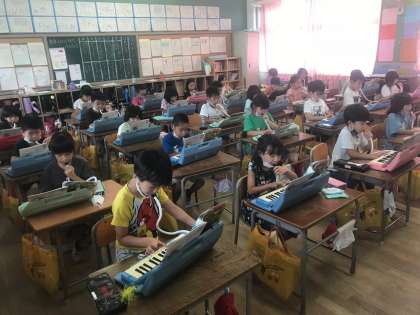 2年生は、音楽で「ぷっかりくじら」のピアニカ演奏をしています!