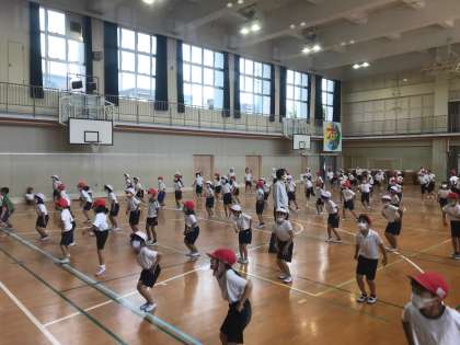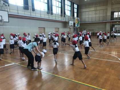 2年生は体育で、マリオのダンスの練習をしました!
