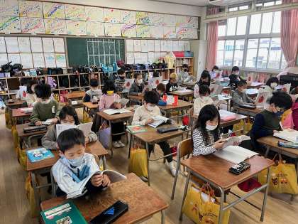 2年生は国語の学習で、かさこじぞうの読み取りをしています!