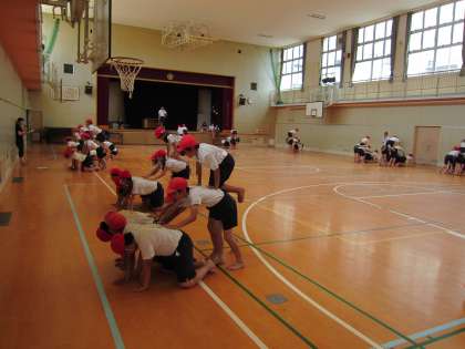 クイックピラミッド、全員ピラミッド、5段の塔と、レベルはどんどん上がっています。技が一つできるたびに子どもたちは達成感を感じ、意欲を増しています。