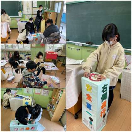 今年最後の委員会活動で、廊下に置く「あるこう」の安全BOXが完成しました。