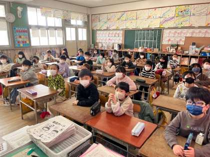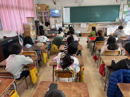 1年生から5年生までが、6年生にお祝いと感謝の言葉をビデオメッセージで伝えます。
