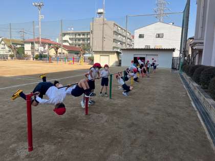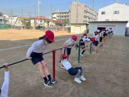 2年生は体育で鉄棒やなわとび、ボールけり遊びをしています!