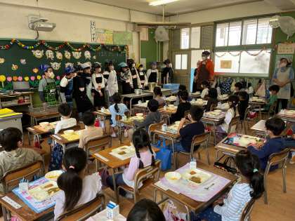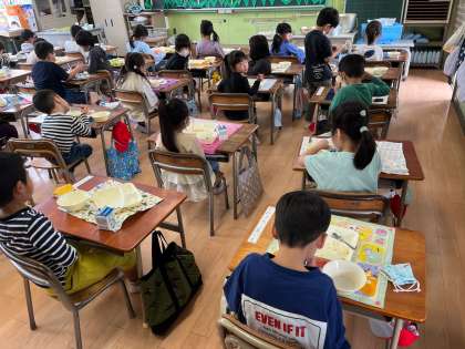 1年生は小学校で、初めての給食を食べました!