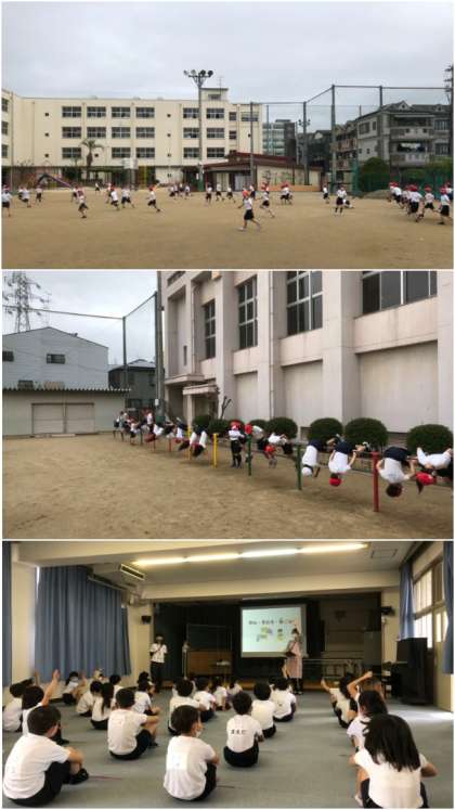 鉄棒にもとりくみ1年生のときに挑戦した技を練習しました。