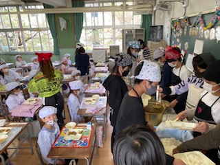 先週から給食がはじまり、6年生は1年生のお手伝いをしました。来週はそうじのお手伝いをする予定です。