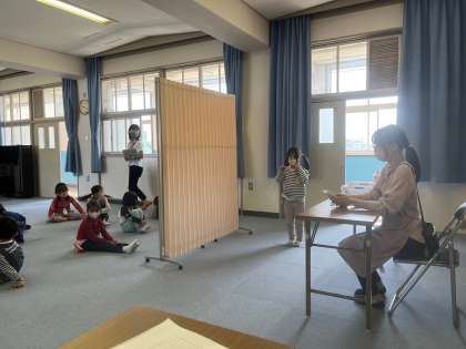 まだ上下左右を口で言うのは難しいので、指差しで穴の空いている方を示しました。