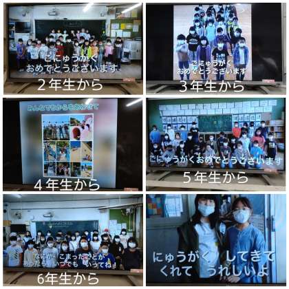 各学年から集まったお祝いビデオレター、在校生のインタビューをまとめて放送しました。