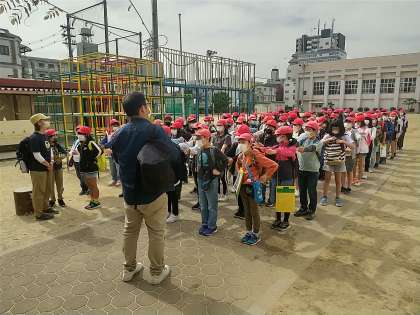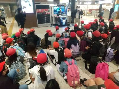 集合の様子です。大和西大寺駅では、AI案内の「アリサ」さんと交流しました。
