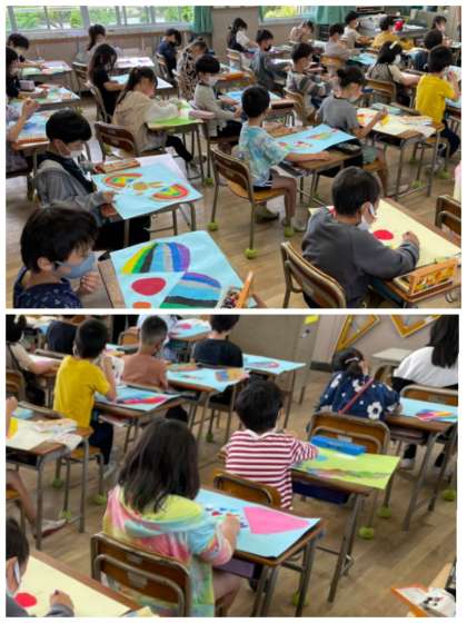 たまごからどんなものが出てくるか想像しながらクレパスで描きました。
