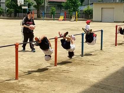 鉄棒で豚の丸焼きから逆上がりに移行しています。