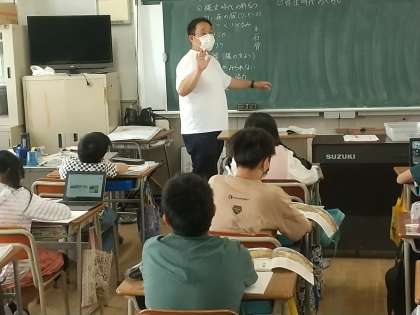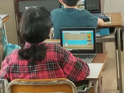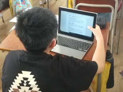 縄文時代の生活についてタブレット端末で調べてまとめています。