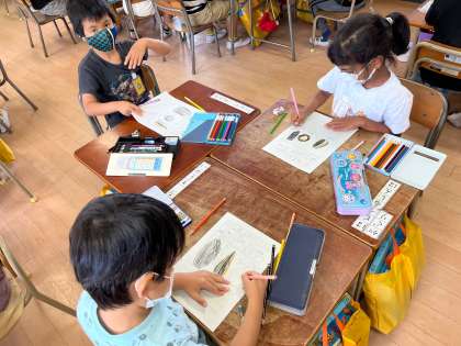 それぞれの種をワークシートに描き、その特徴を調べました。