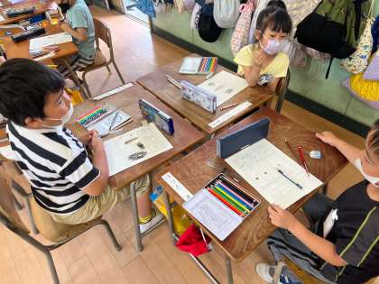 1年生は学習園に、ひまわり、おしろいばな、ふうせんかずらの3種類の花の種を植えました!