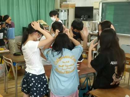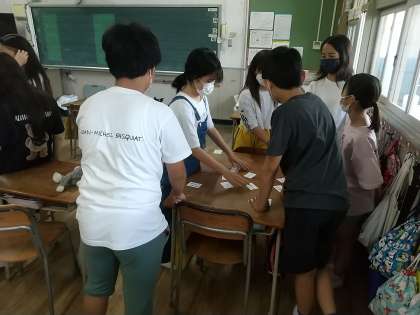 完成したクラスはカルタをしています。